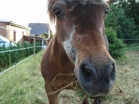 Als wir die beiden verwahrlosten Würmchen (ihn und seinen Halbbruder Sunny) beim Händler in einem heruntergekommenen "Ponylager" sahen, haben wir ihn kurzentschlossen mit in den Hänger gepackt. Nach einem herrlichen Sommer - wohl der bisher schönste im Leben der beiden - haben wir ein tolles Zuhause in einem Offenstall mit Pferdegesellschaft für den Kleinen gefunden. Alles Gute, Anja und Snoopy!